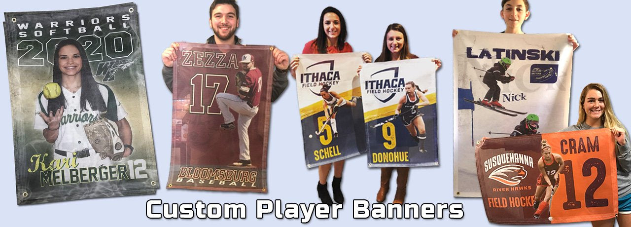 Honor Your Senior Student Athlete. Not every player should get a trophy, but EVERY player deserves a banner. Honor each player on your team with a keepsake they'll proudly display now and for years to come. Celebrate your championship with a custom flag or banner. Make your Senior Day something to remember. Dress up the display at your team banquet with player banners, then offer them as gifts. It's always a favorite of the athletes. If you're looking for banners, posters, jumbo sports cards, flags or anything with your team logo on it, look no further. On Deck Graphics can do that! Turn your favorite photo into an awesome banner today!!!